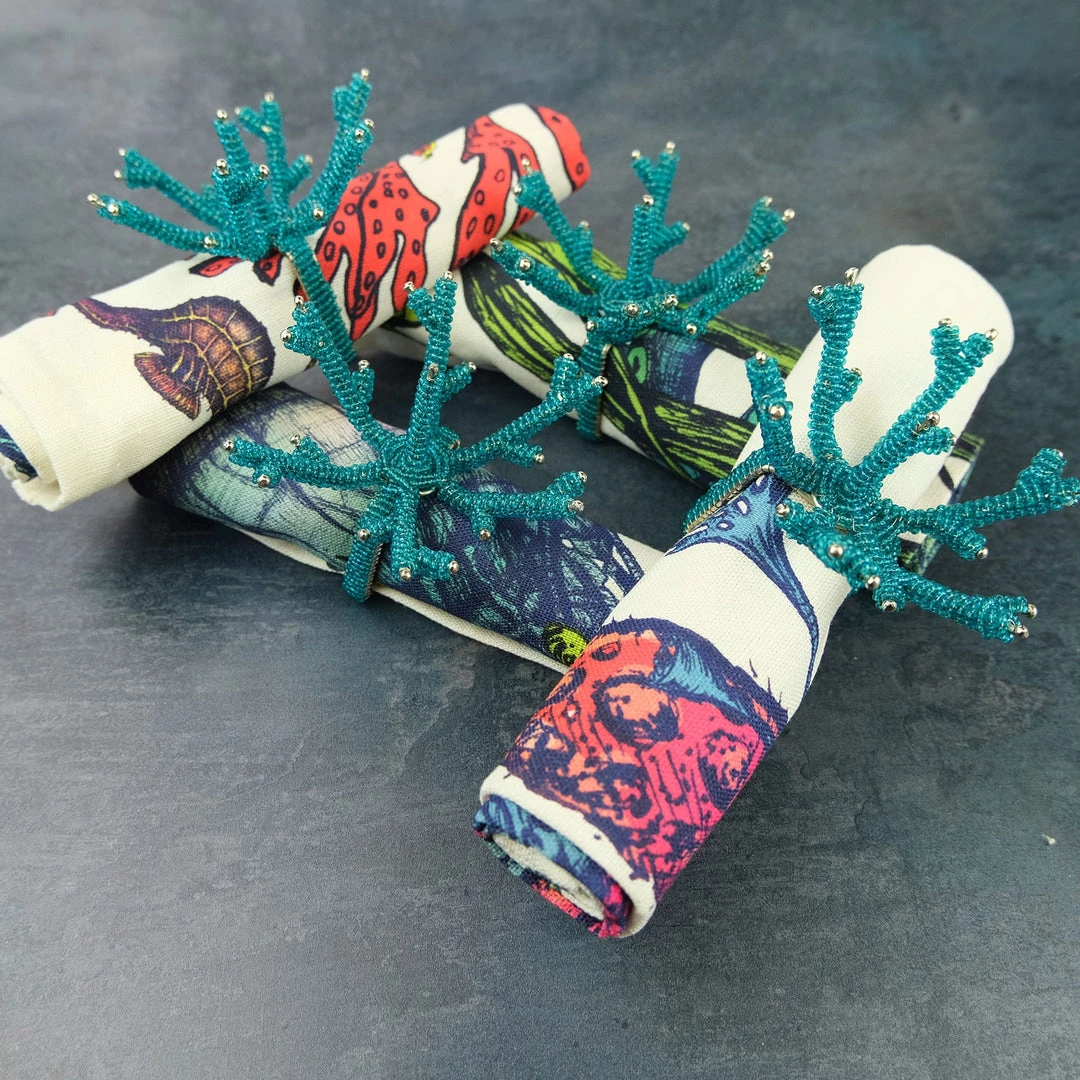 How gorgeous are these coral napkin rings? They are beaded in a beautiful turquoise and work perfectly with our reef napkins, they will add a splash of colour to your dining table and certainly be a talking point with your guests!
