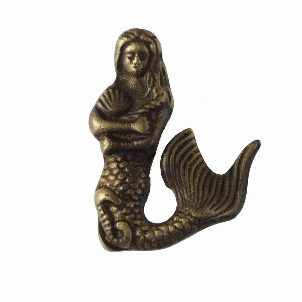 This hand crafted solid brass sitting mermaid handle will put the finishing touch to any piece of furniture from a chest of drawers, bathroom cupboard or kitchen drawers. The hand applied antique finish looks great against every colour and enhances all the details in this beautiful piece.