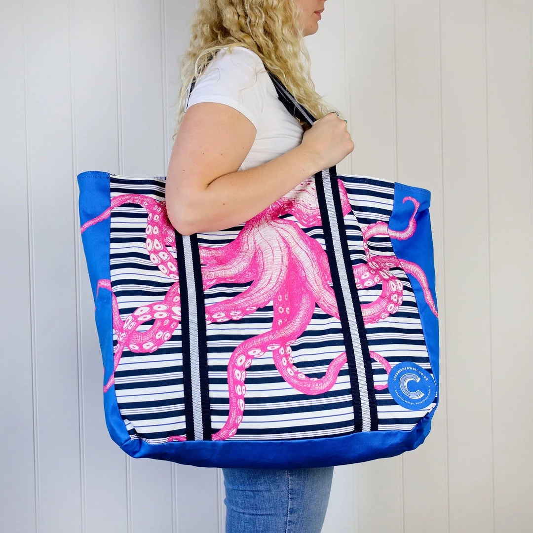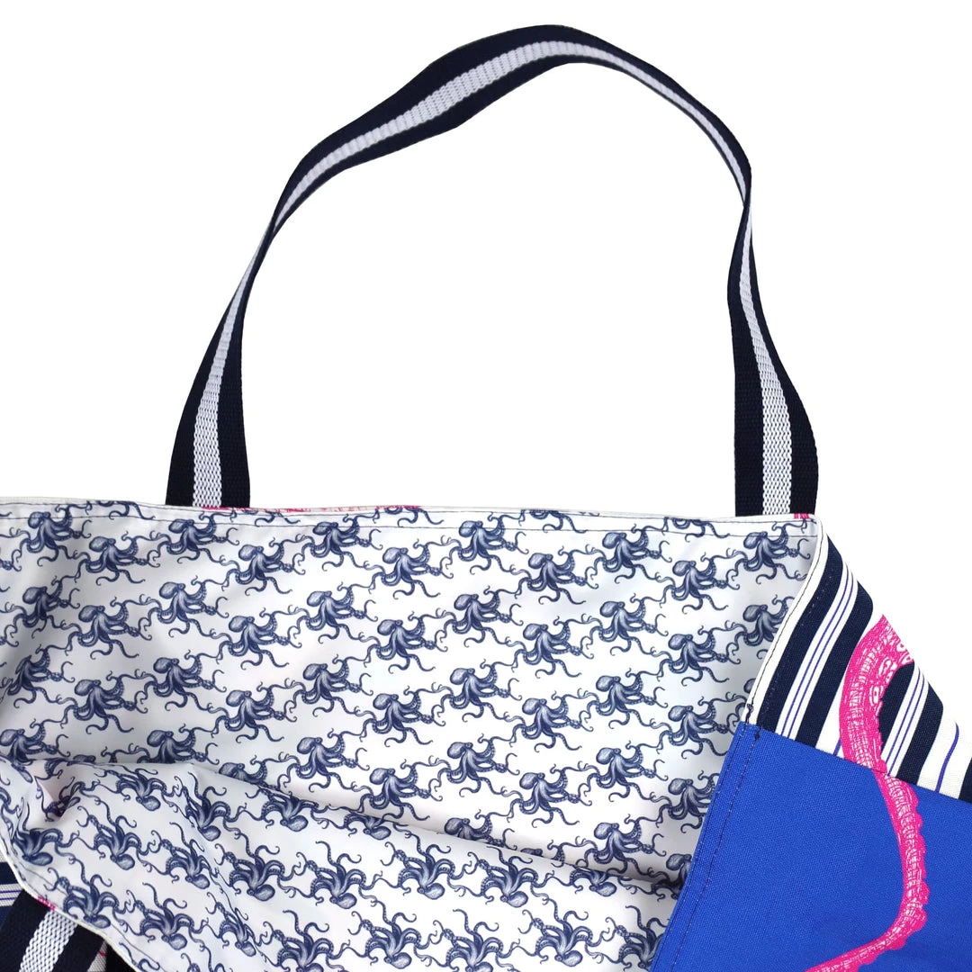These supersized bags are the perfect accessory for your day to day use. They are beautifully made with half Panama cotton, have a waterproof lining inside and have a gorgeous two toned webbing strapping specially made in France.
