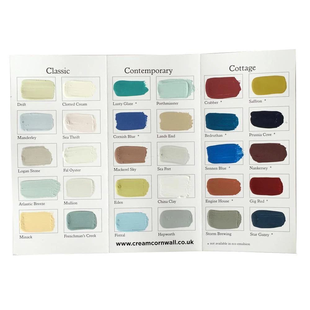 Our colour cards are lovingly hand painted so that you can see what each colour really looks like. We took a long time perfecting these Cornish colours and had a lot of fun choosing the names, from Frenchman’s Creek, Gig Red to Lusty Glaze, you will find the perfect colour to remind you of days exploring this beautiful county.