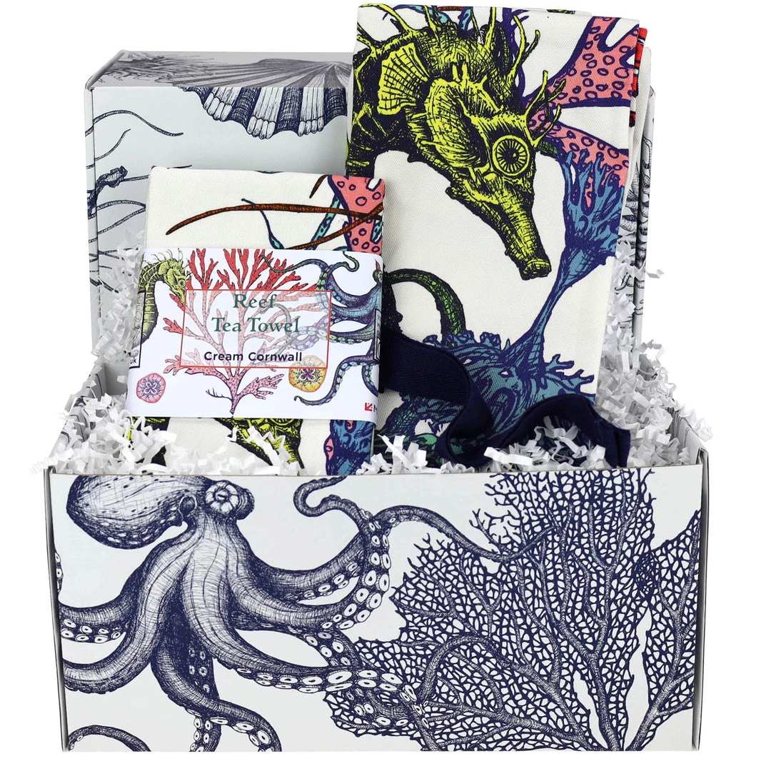 Our apron and tea towel hamper is the perfect gift for anyone who loves being in the kitchen. Who can resist our beautiful reef collection of kitchen linens. In this gorgeous gift box, we’ve put one of our Aprons which is an absolute show stopper and a tea towel, almost too good to use!