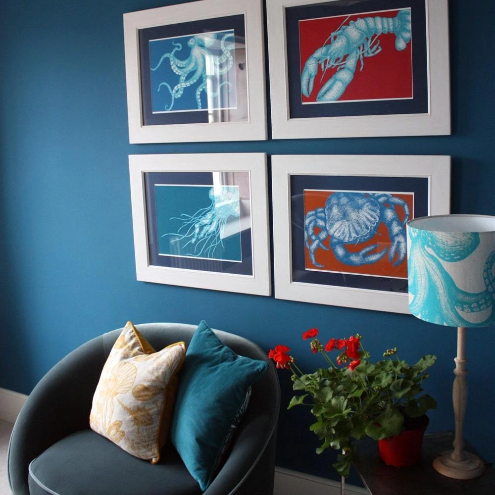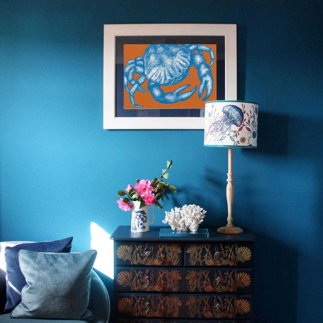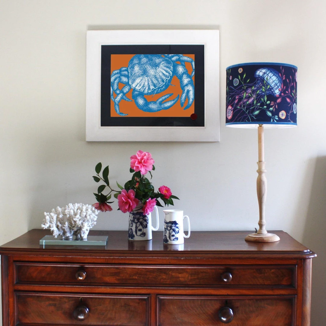 Bring a little bit of Cream Cornwall into your home with one of our gorgeous prints on thick and creamy paper, perfect for framing. Our crab is always a firm favourite here at Cream, we think he looks great on this deep red background.