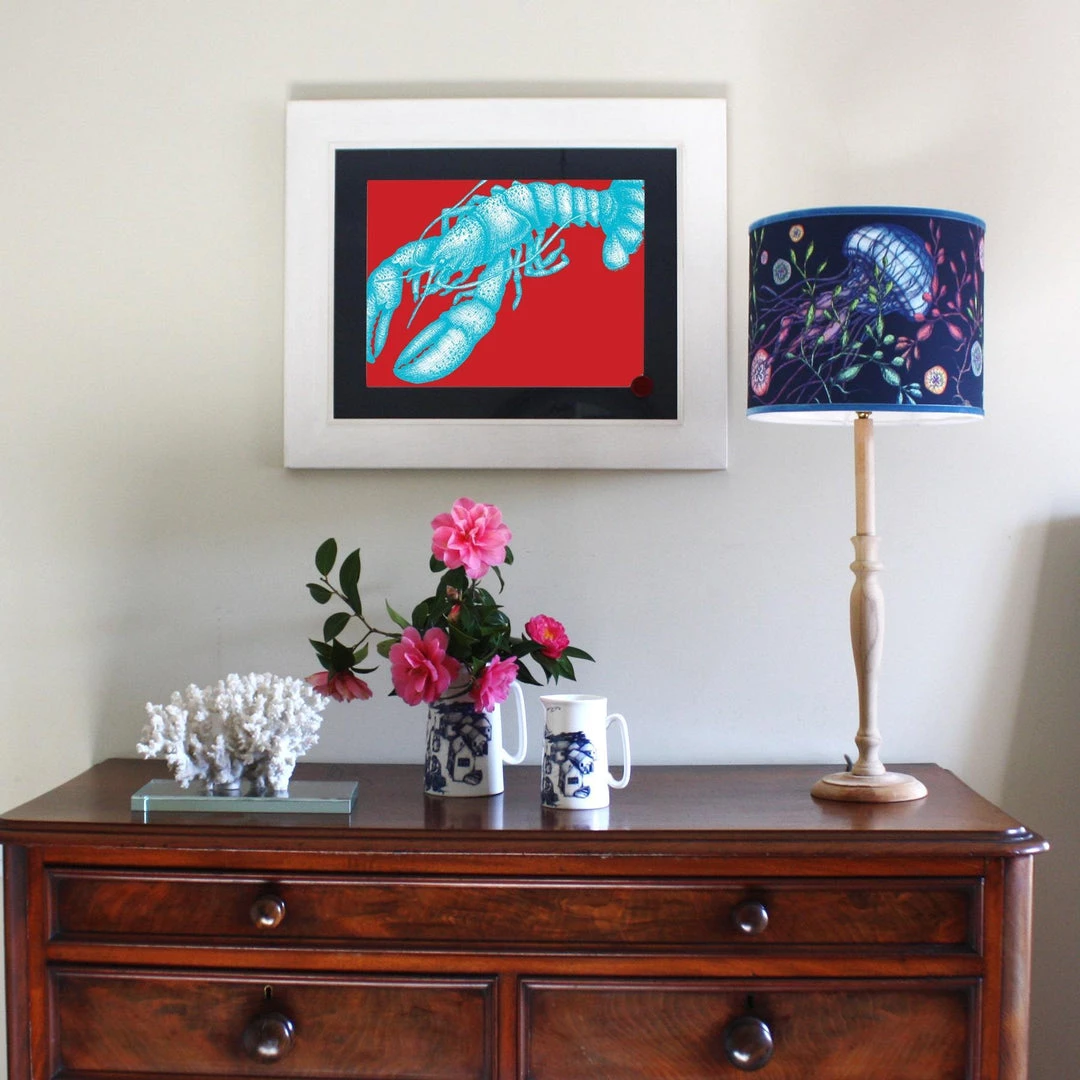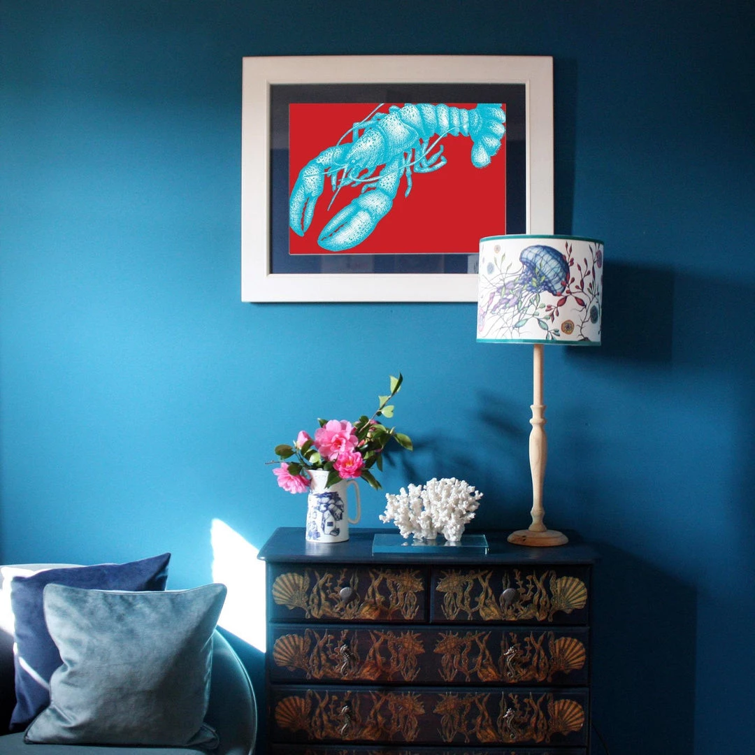Bring a little bit of Cream Cornwall into your home with one of our gorgeous Lobster art prints on thick, creamy paper, perfect for framing. We love the aqua against the deep red, perfect for a coastal pop of colour.