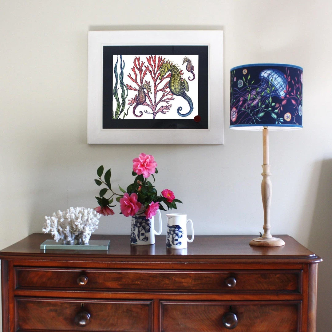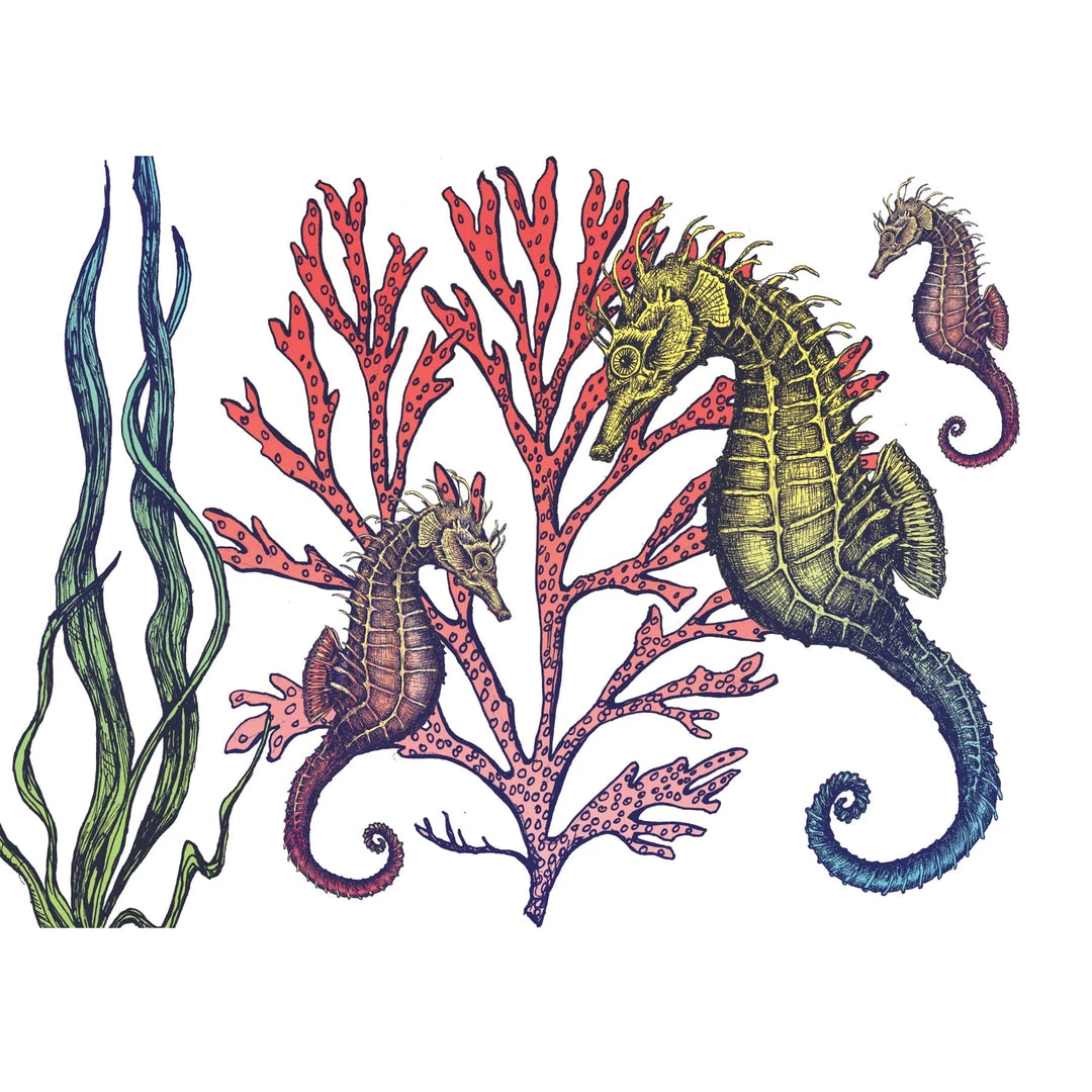 Seahorses are one of those sea creatures that we can’t seem to get enough of – mesmerising and elegant, we couldn’t create a collection inspired by coral gardens without including one of our most popular designs. The jewel colours really pop in this print, so bring our underwater wonderland into your home with one of our gorgeous prints on thick, creamy paper, perfect for putting into in a frame of your choice. Each print comes with one of our red wax seals.