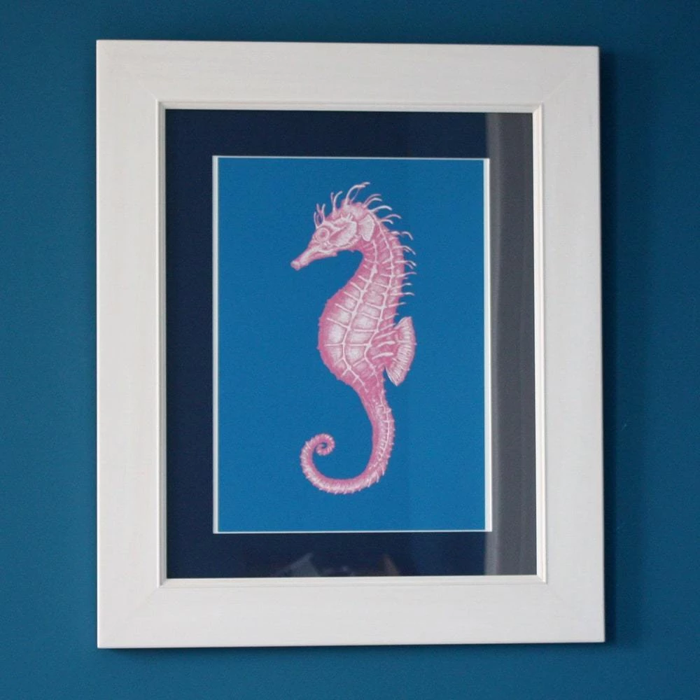 Bring a little bit of Cream Cornwall into your home with one of our gorgeous prints on thick and creamy paper, perfect for framing. We absolutely love this hot pink Seahorse! Add some coastal colour to your wall with this gorgoues update on our classic print.