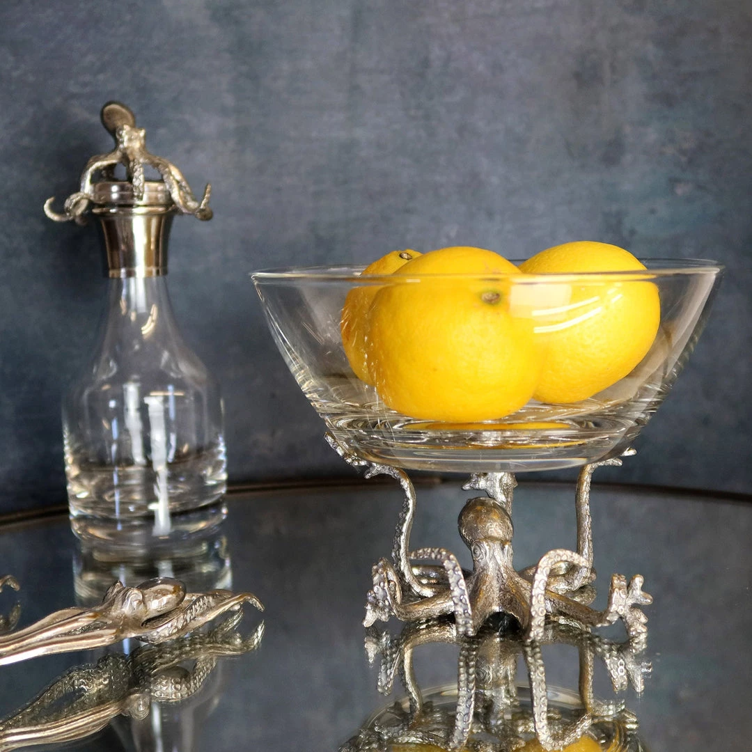 The base of this glass bowl is a gorgeous octopus whose tentacles appear to hold up the bowl. Whether you use it for serving meals, storing fruit or presenting a desert, it’s sure to make a statement on your table.