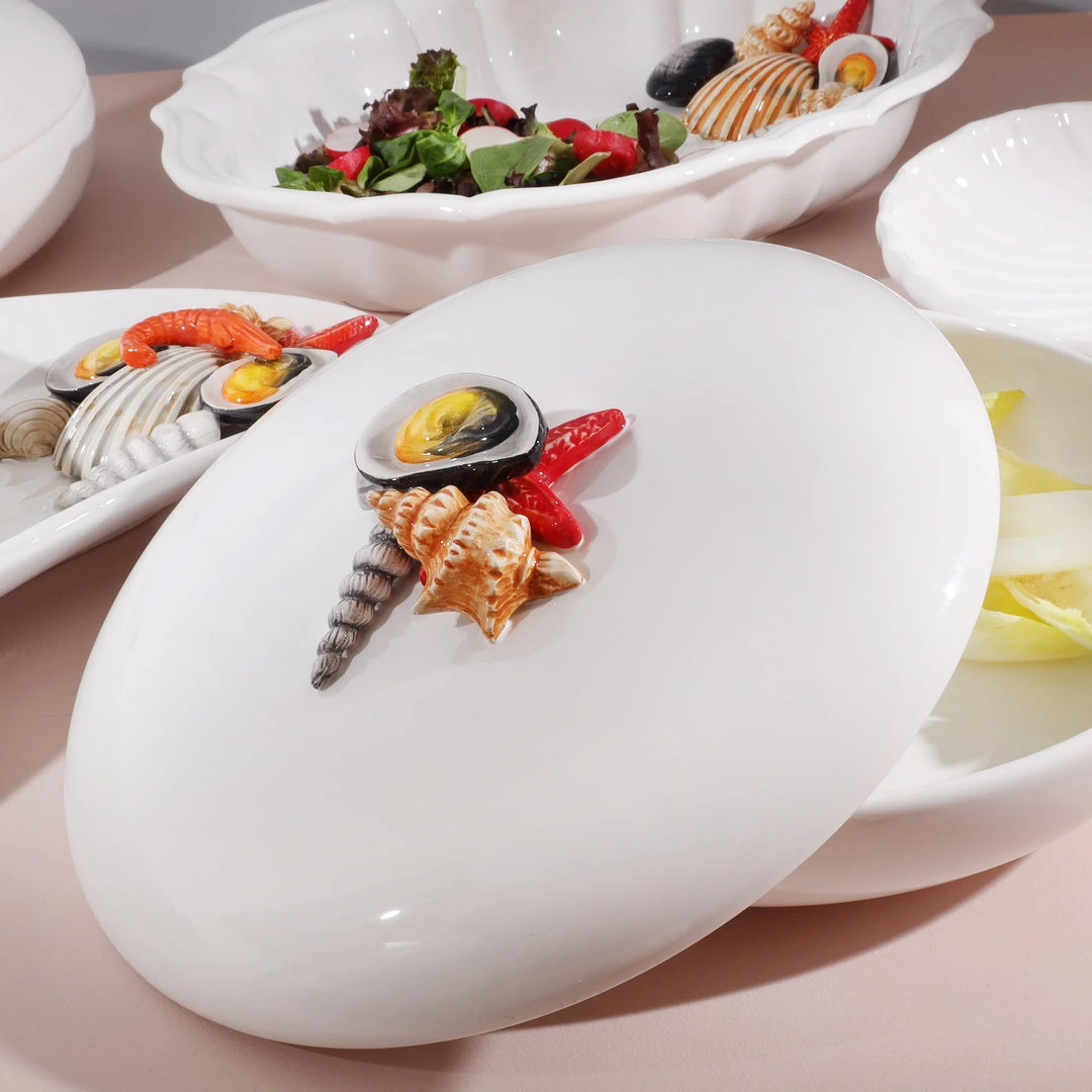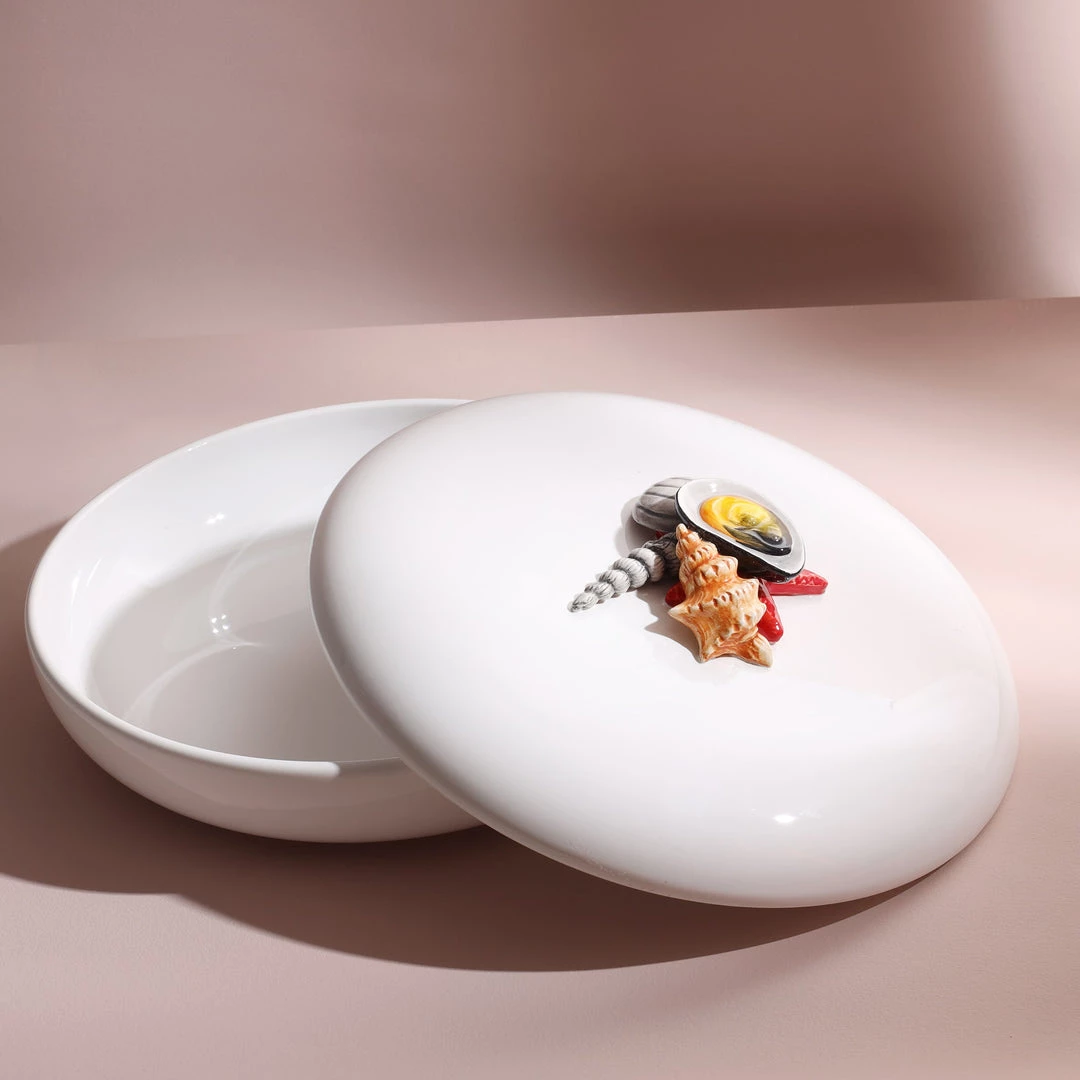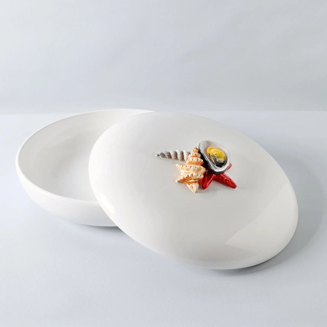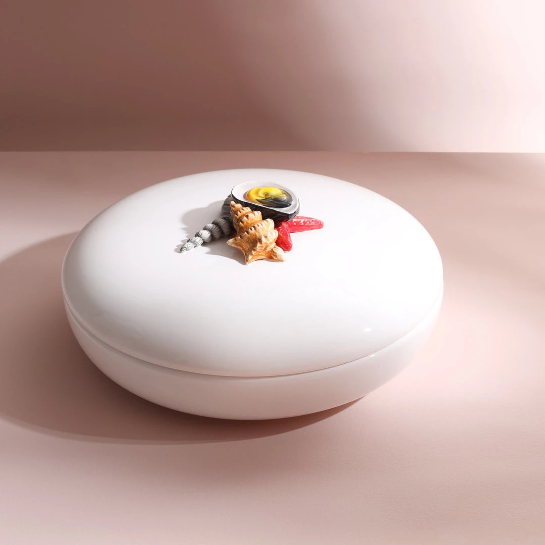 This beautiful medium sized crisp white box is the perfect place to hold your treasures. The lid is decorated with gorgeously detailed ceramic shells, making it an ornamental feature in any room.