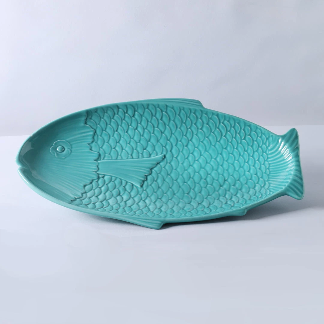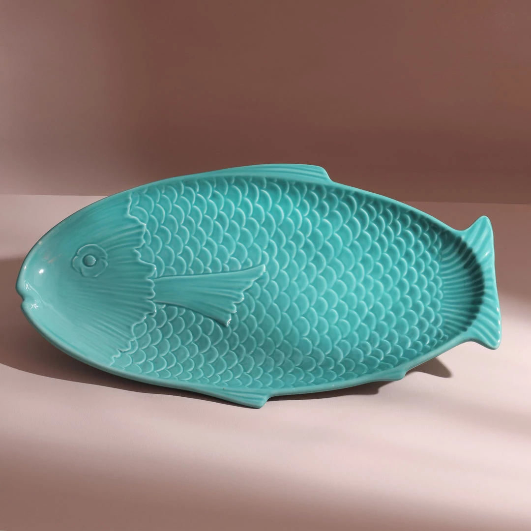In a gorgeous aqua blue, this medium sized fish shaped ceramic tray is sure to be the talking point of the table. Instantly create that coastal style with this beautiful ceramic piece.