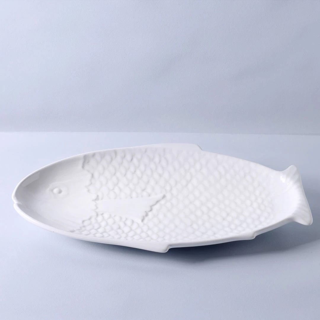 In a crisp white, this medium sized fish shaped ceramic tray is sure to be the talking point of the table. Instantly create that coastal style with this beautiful ceramic piece.