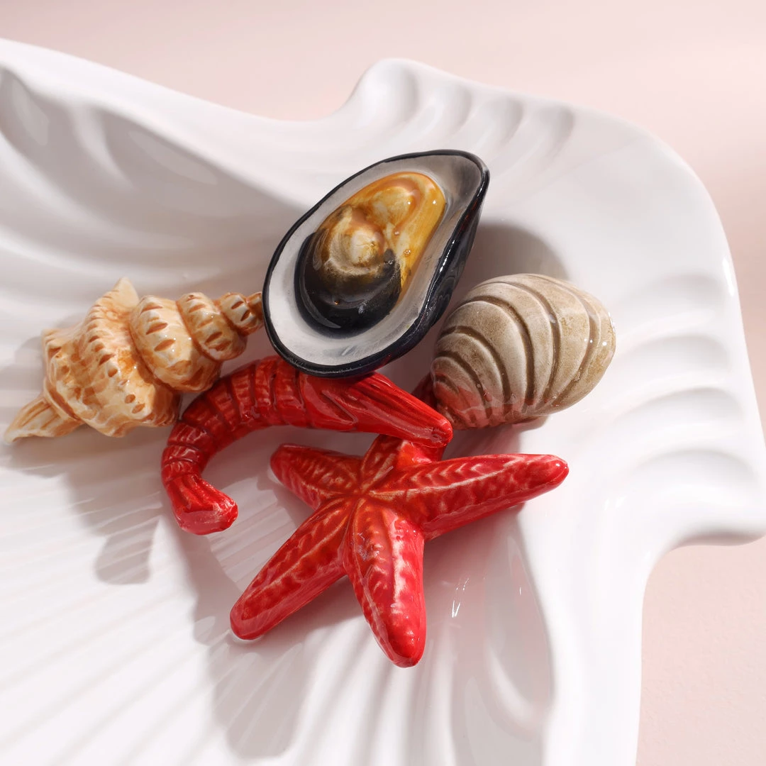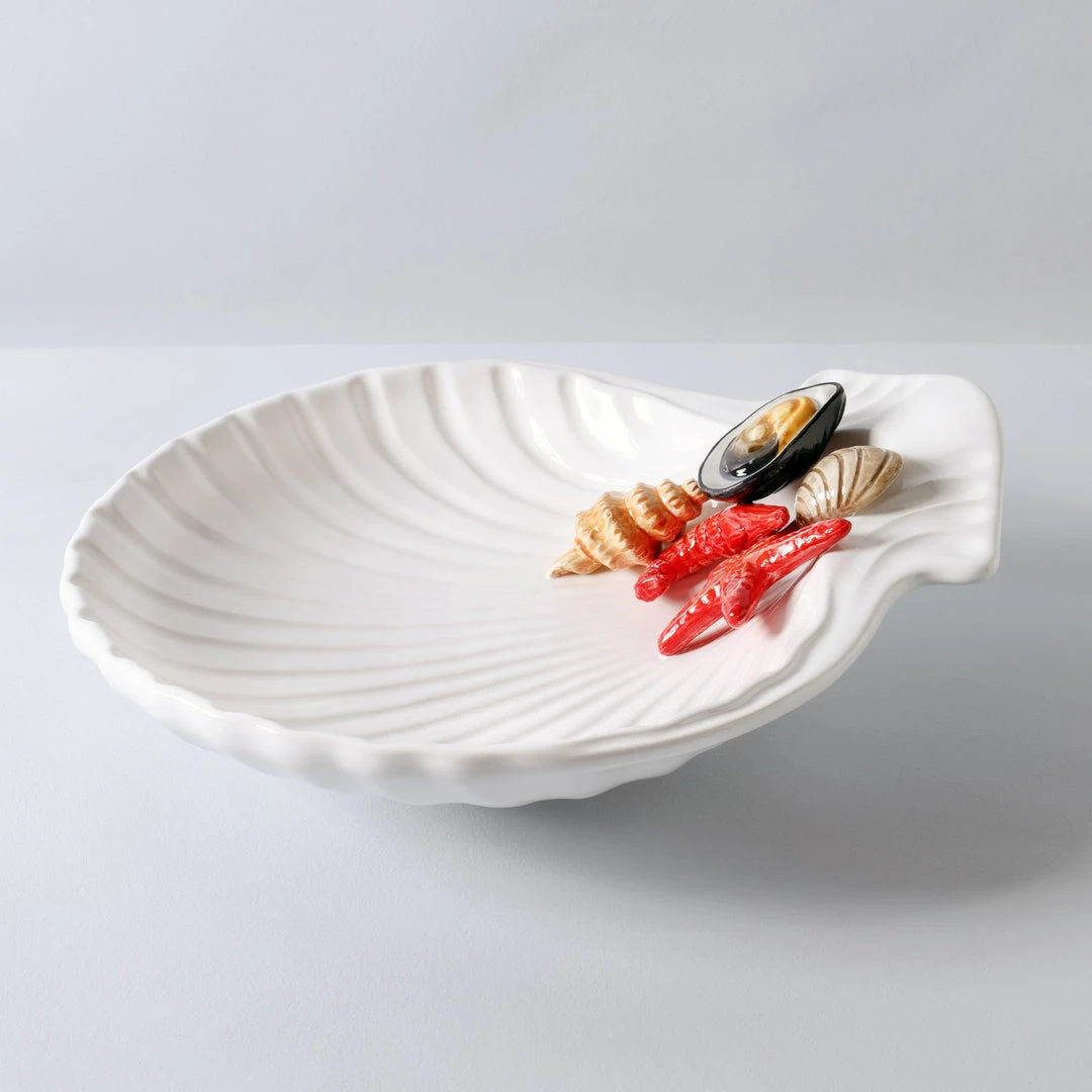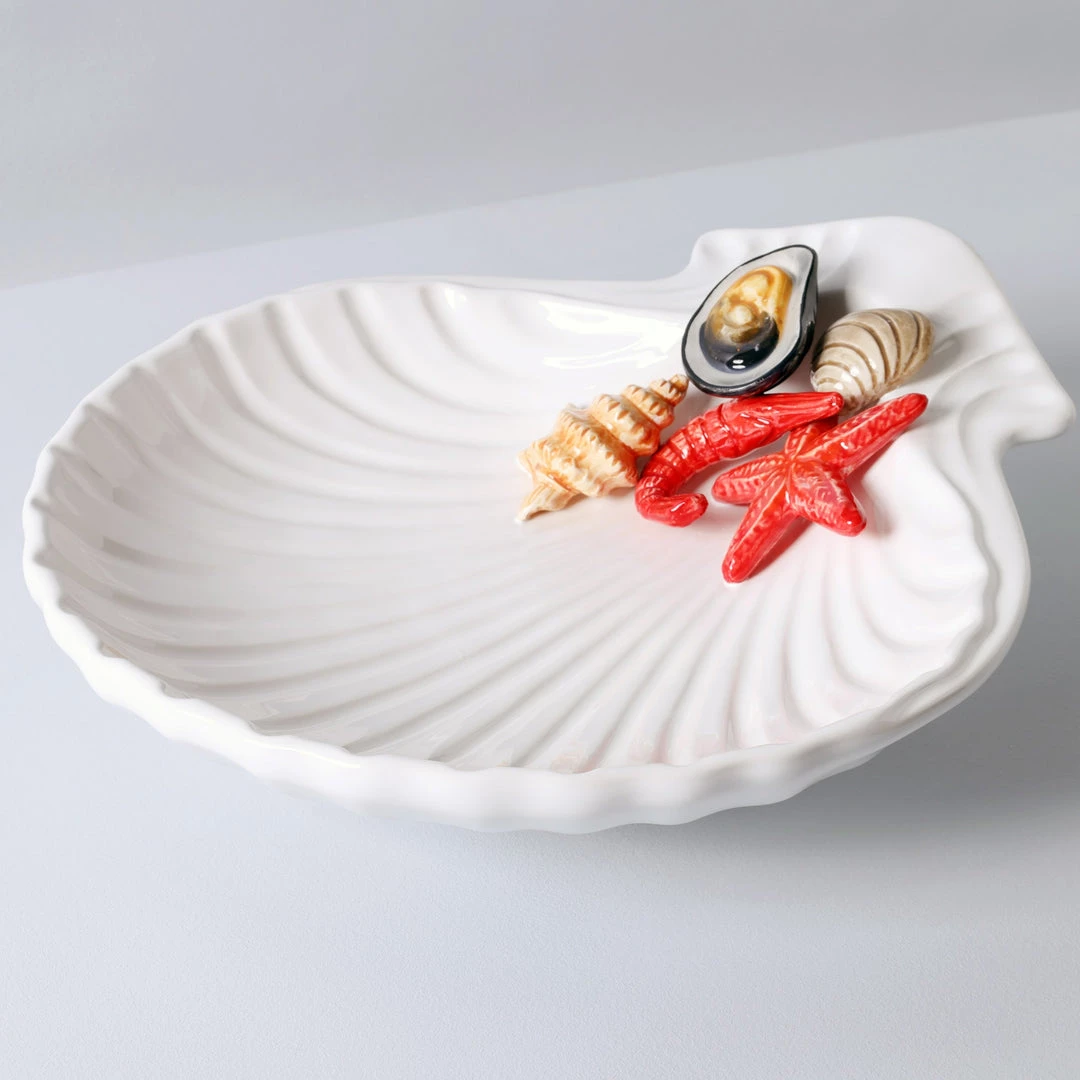 This absolutely gorgeous crisp white scallop shell plate is adorned with intricate coloured ceramic shells and is one of those unique pieces that gets everyone talking. Whether used as a decorative piece or as part of your dinner service it’ll make a beautiful statement.