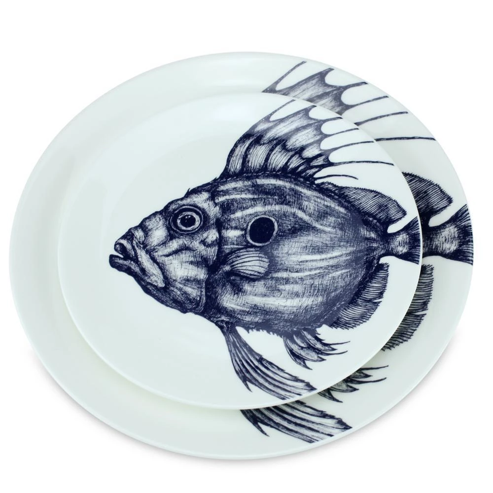 Our John Dory Plates feature this delicately hand-drawn illustration of this fish who we think is quite the character with his distinctive outline and facial expression.