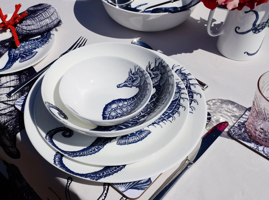 Coastal themed dining is always a pleasure, especially when you have our beautiful bone china to dress your table. Our collection of eight beautifully illustrated sea creatures and crustaceans will transport you straight to the ocean’s edge. These beautiful plates makes the perfect addition for dressing a coastal themed table setting.