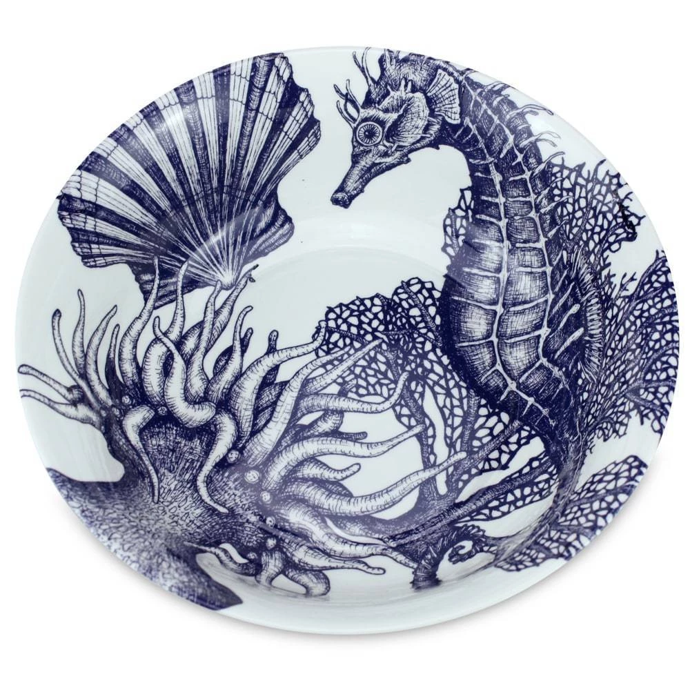 This striking illustration on our Seahorse Salad Bowl of this beautiful sea creature swimming amongst fan coral, anemones and the classic scallop shell creates a beautiful underwater ocean scene.