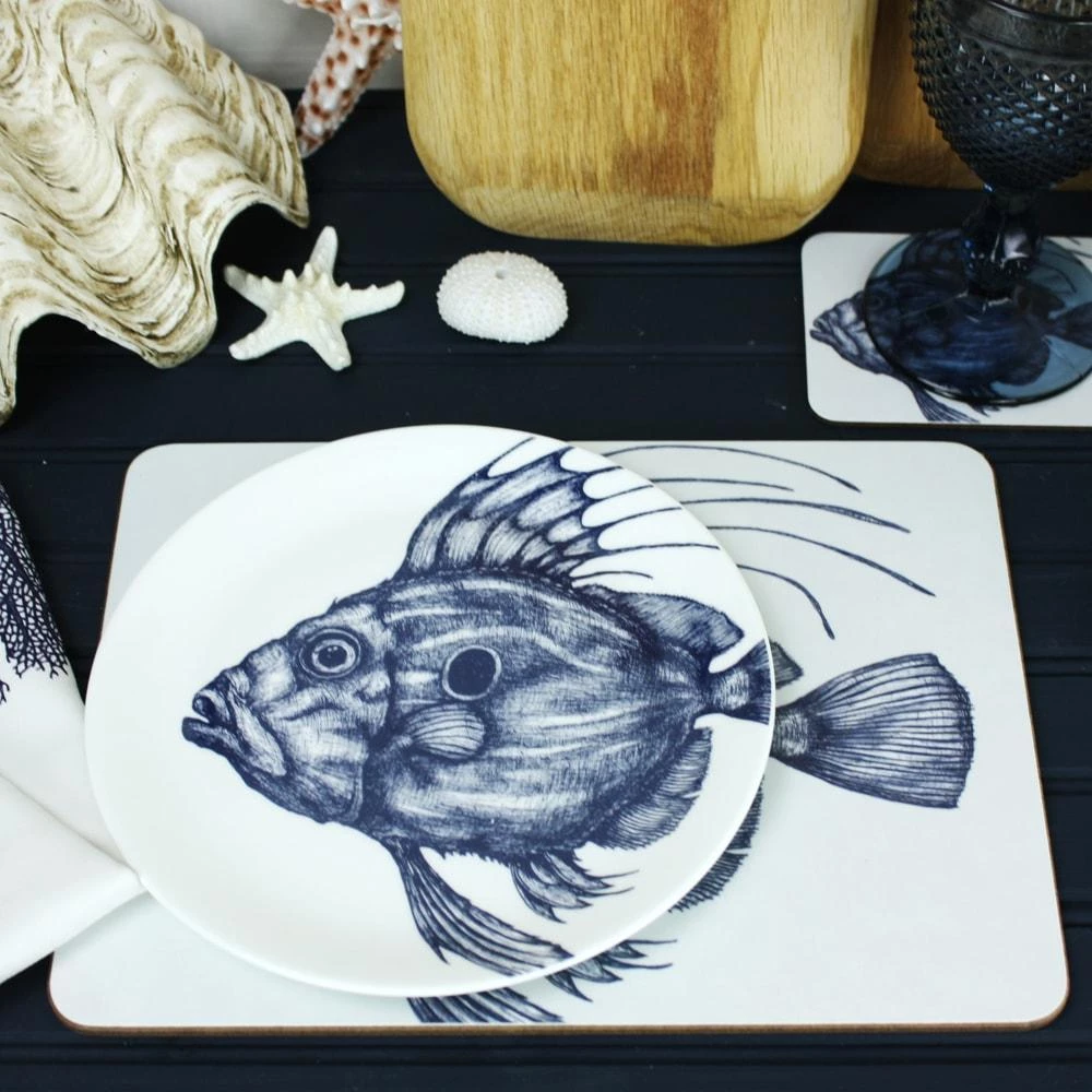 Our John Dory Plates feature this delicately hand-drawn illustration of this fish who we think is quite the character with his distinctive outline and facial expression.
