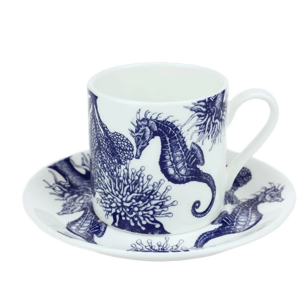 If you love our seahorse design and coffee, then this espresso cup is perfect for you! It features our beautiful seahorse design swimming amongst fan coral and sea anemones.