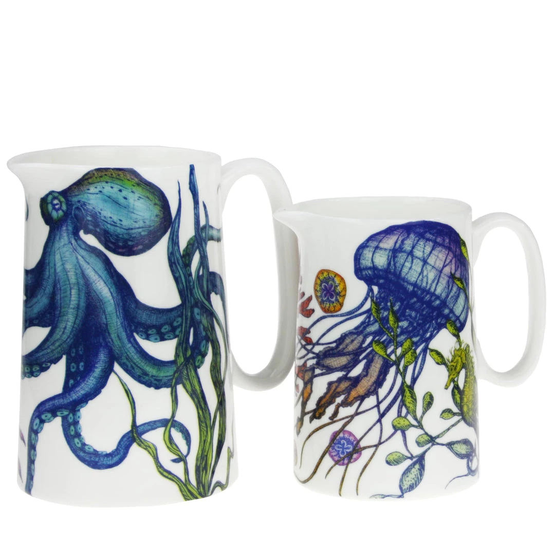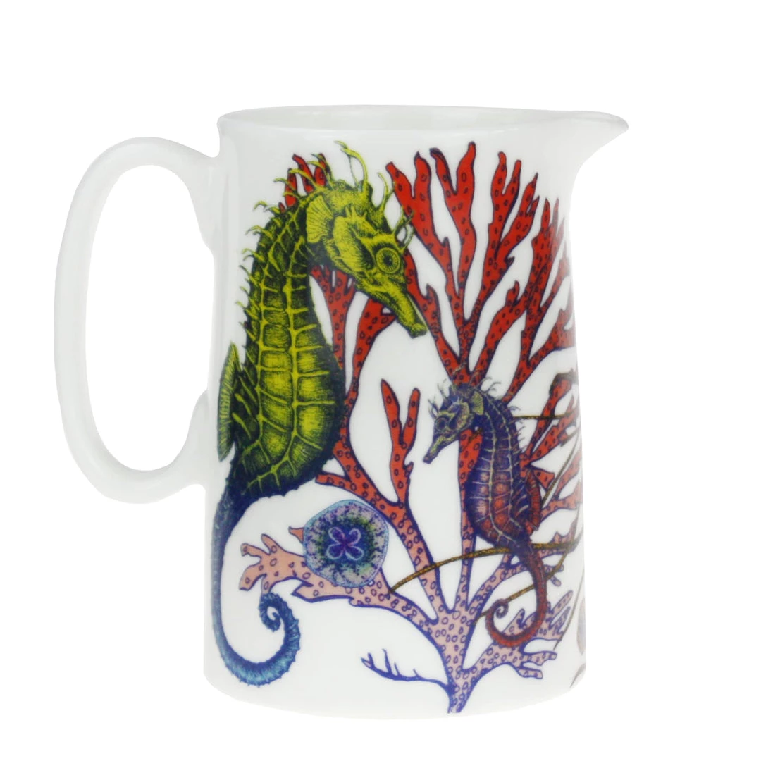 This jug showcases a variety of hand illustrated jellyfish and seahorses in bright shades, on a backdrop of floating seaweed that brings life and colour into any room. Inspired by the beauty that lies beneath in underwater wonderlands, the unique design make the jug an instant talking point
