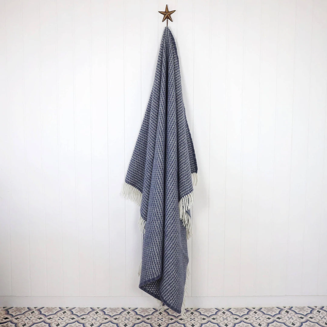 This lamb’s wool throw is woven with a soft, smoky blue onto an ecru base, creating an a perfectly colour balanced weave. This colour works so well with a lot of our collections. Great with Beachcomber, the classics and Shipwreck.