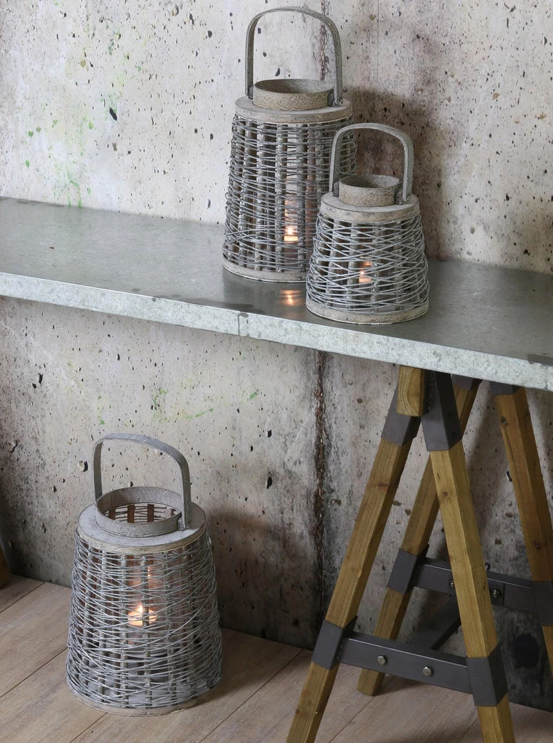 One of our most popular lanterns, it reminds me of a lobster pot with the woven metal and distressed wood. With a large glass jar in the middle, there’s plenty of room for a chunky candle.