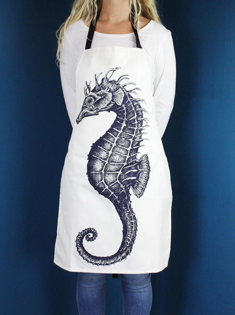 This striking illustration on our Seahorse Apron is popular bold addition to any coastal themed kitchen.