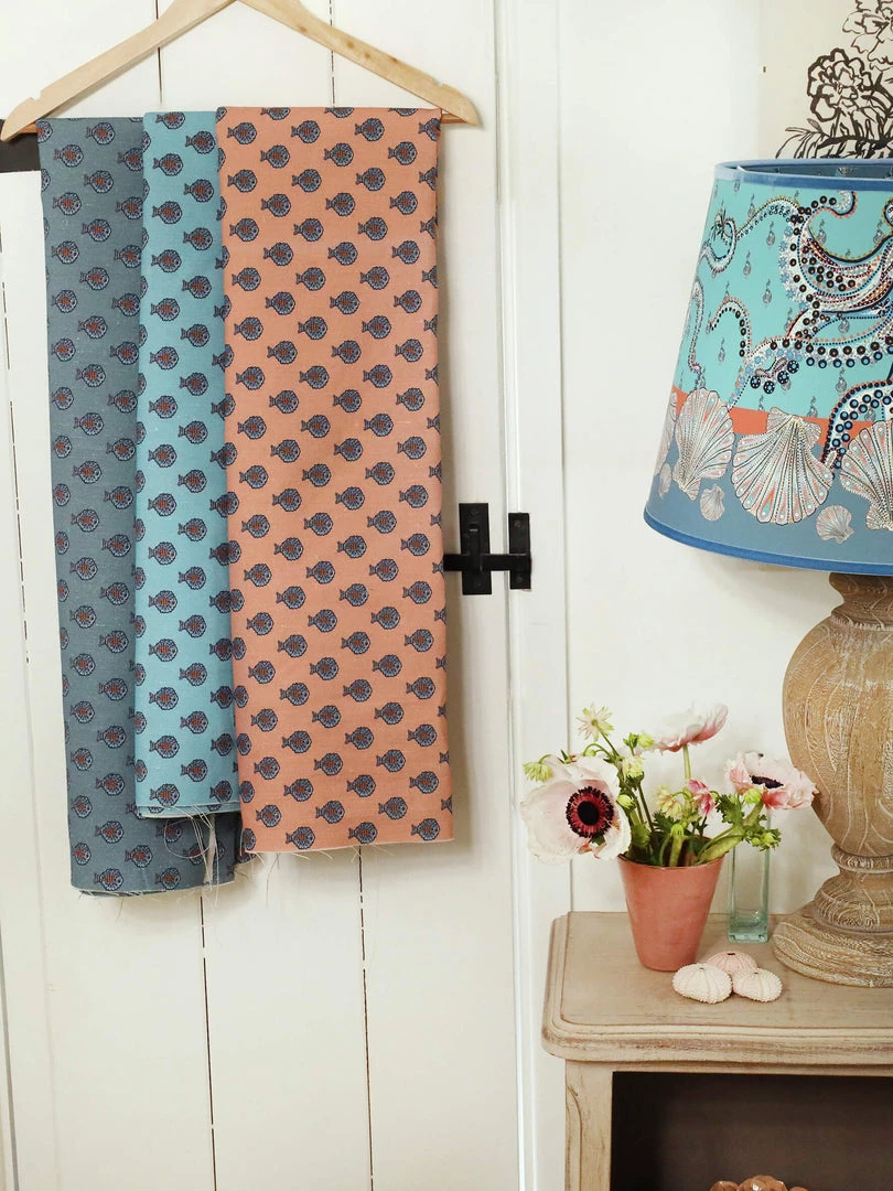 Our Byron mini pufferfish fabric showcases a unique design that’s printed on a background of Provence pink linen and cotton. Intricately illustrated, these beautiful pufferfish make an impact, resulting in a contemporary twist on the traditional coastal look.