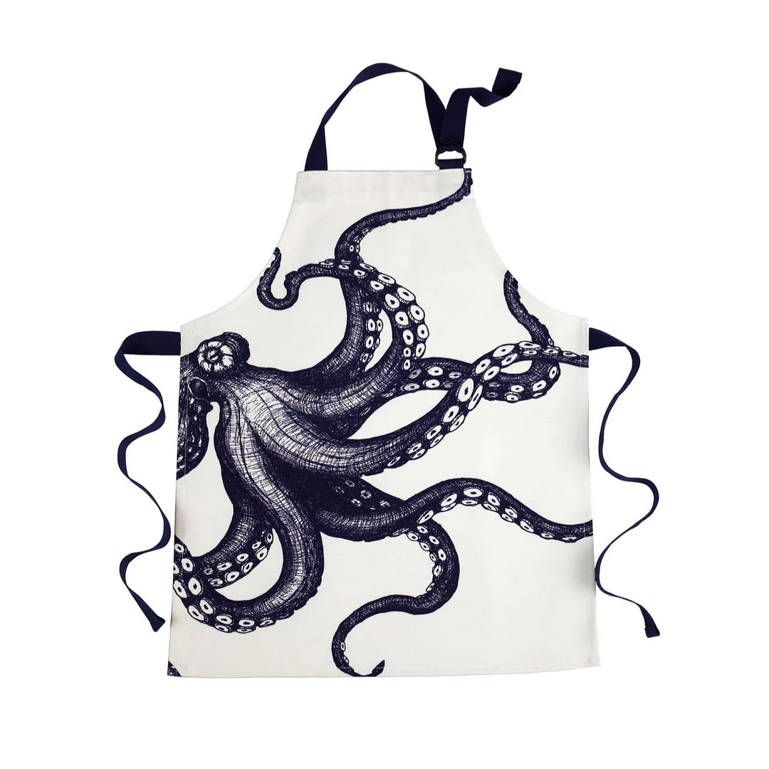 The majestic octopus floating its way over the apron and stretching its tentacles makes an elegant, yet eyecatching, bold statement.