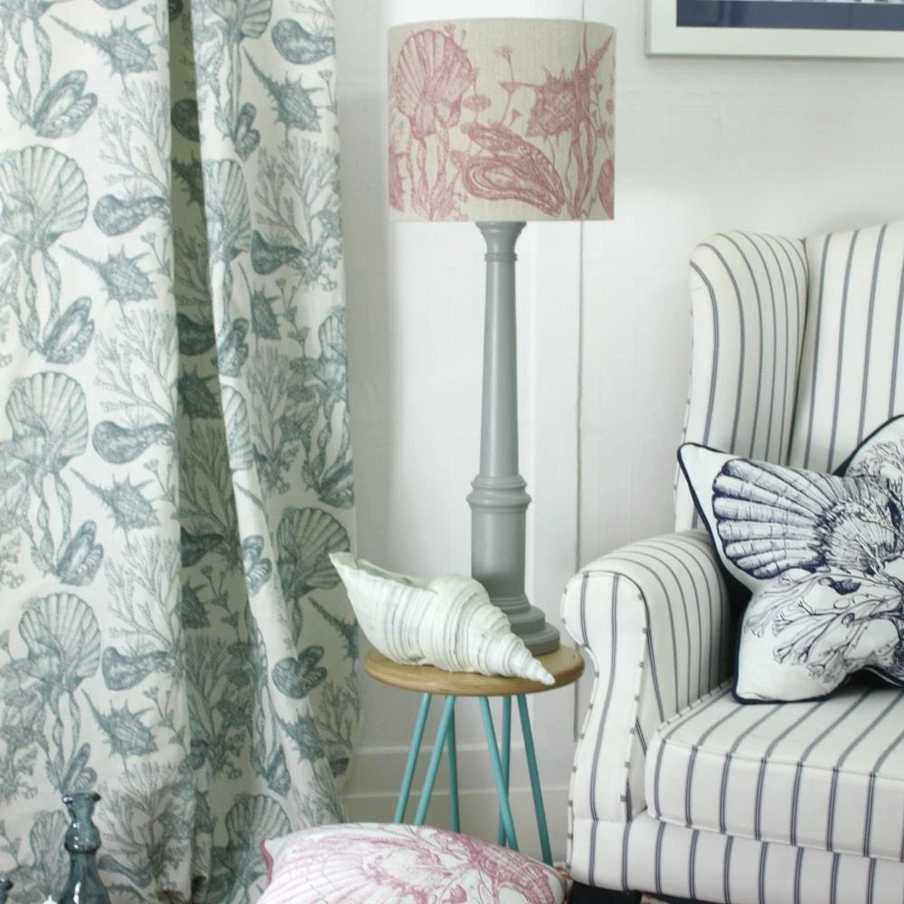 Our Helford Shell design is a beautiful, ethereal fabric that’s perfect for your coastal home. The inspiration for this design is right on our doorstep – the iconic Helford river; home to local mussels and the surrounding harbour, where hand dived scallops are a local delicacy.