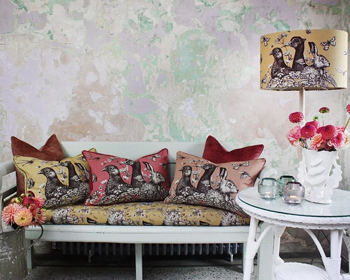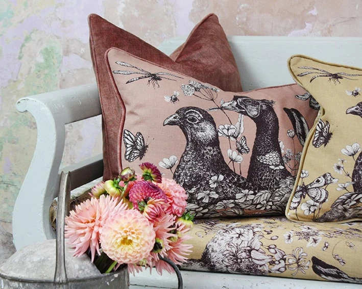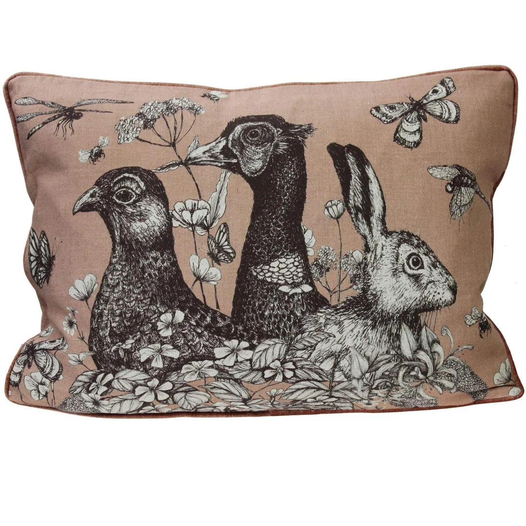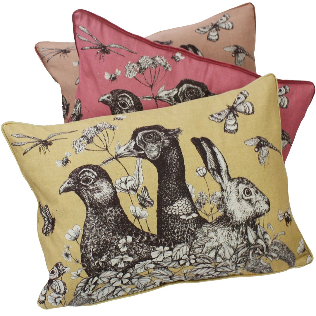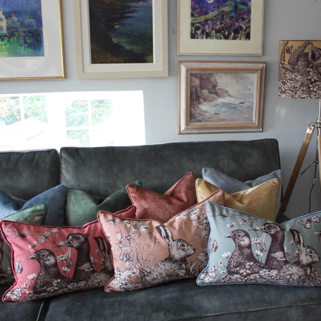 These cushions feature our classic Game Trio, the English Hare, the Grouse and the Pheasant, beautifully hand drawn in pen and ink. Inspired by life at Trenwith, a beautiful 16th century estate which sits nestled in the Cornish countryside above a sheltered creek on the Helford River.
