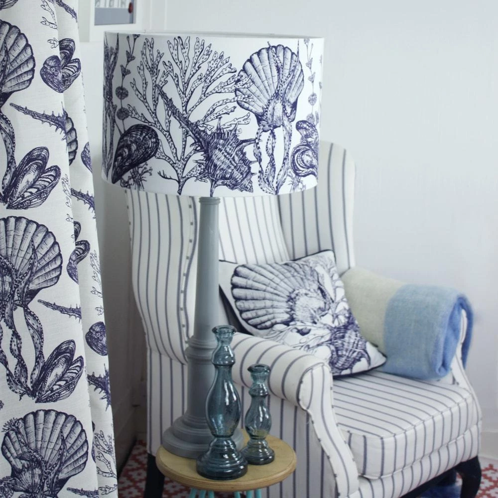 Our Helford Shell design is a beautiful, ethereal fabric that’s perfect for your coastal home. The inspiration for this design is right on our doorstep – the iconic Helford river; home to local mussels and the surrounding harbour, where hand dived scallops are a local delicacy.
