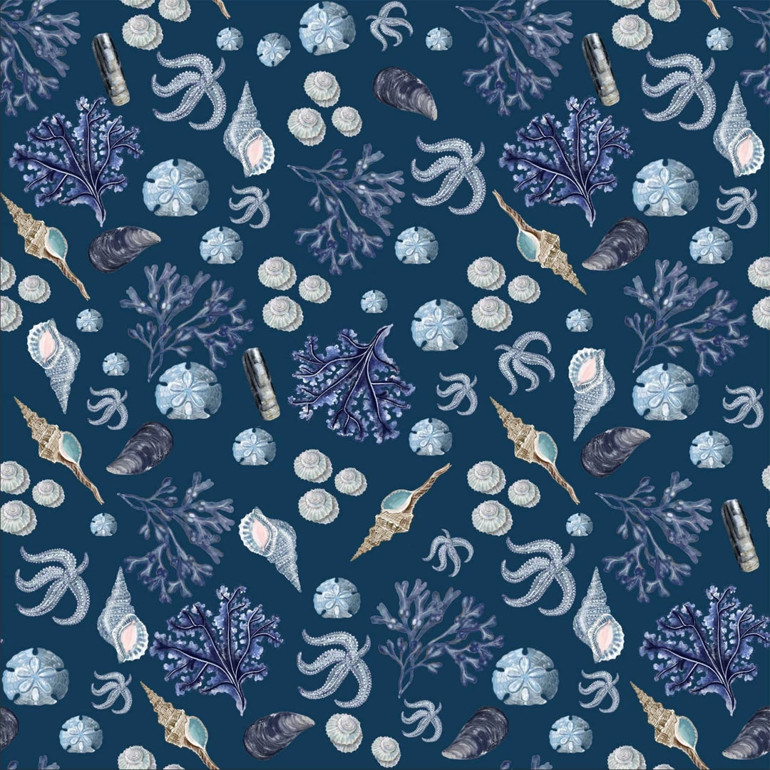 This beautiful design reminds us of Cornish summers. Inspired by the coast, this fabric makes it easy to create your own unique coastal style. Razor clams, mussel shells, winkles and a whelk shell sit against a beautiful fan of indigo seaweed. It has shades of blue, from deep washy indigos, silver greys, through to sky blues with a pop of soft pink.