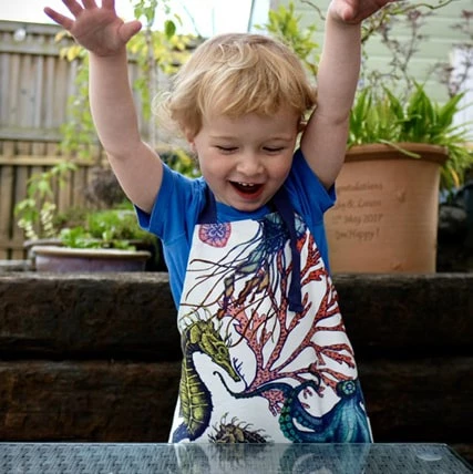Our Reef apron is work of art, we’ve taken our favourite sea creatures and made them even more beautiful than ever. Saturated with colour you will be taken down deep, to an underwater wonderland where everything is vibrant and beautiful. Pop on one of reef aprons and transport yourself to our underwater world!
