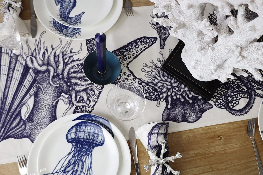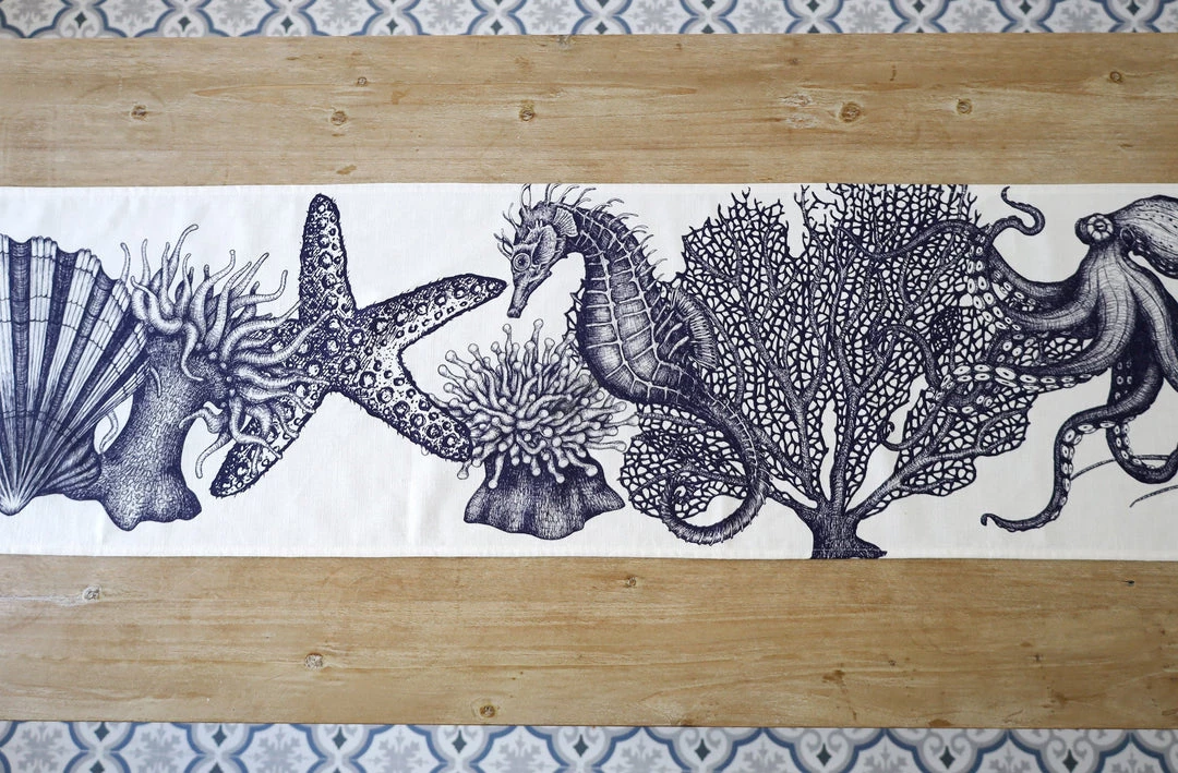 Our classic sea creature linen table runner will really dress your table and make mealtimes even more pleasurable. This gorgeous runner has all your favourite designs from our Classic collection swimming along the middle to create an amazing underwater wonderland.