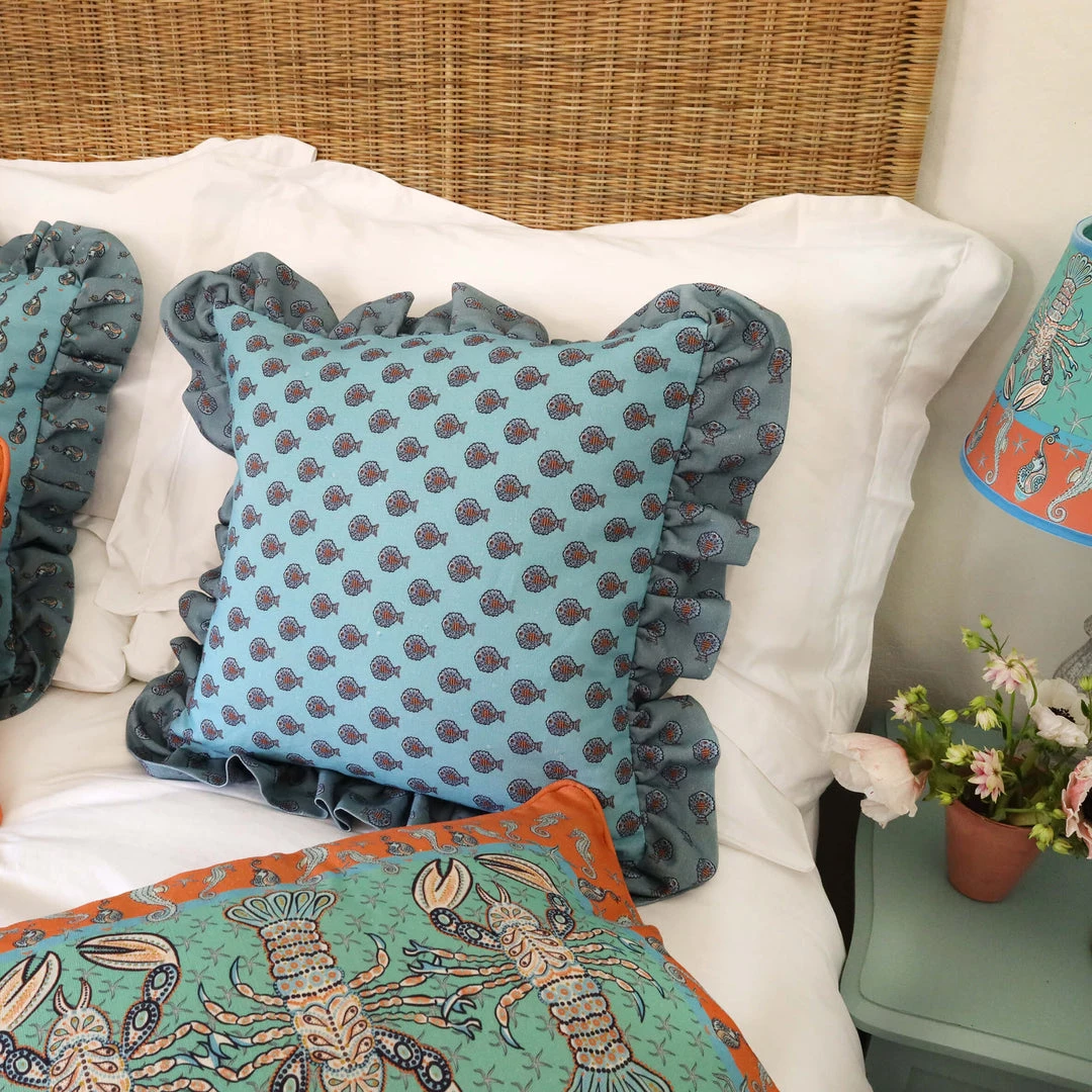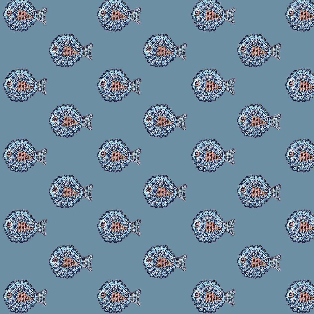 Our Byron mini puffer fish fabric showcases a unique design that’s printed on a background of airforce blue linen and cotton. Intricately illustrated, these beautiful pufferfish make an impact, resulting in a contemporary twist on the traditional coastal look.