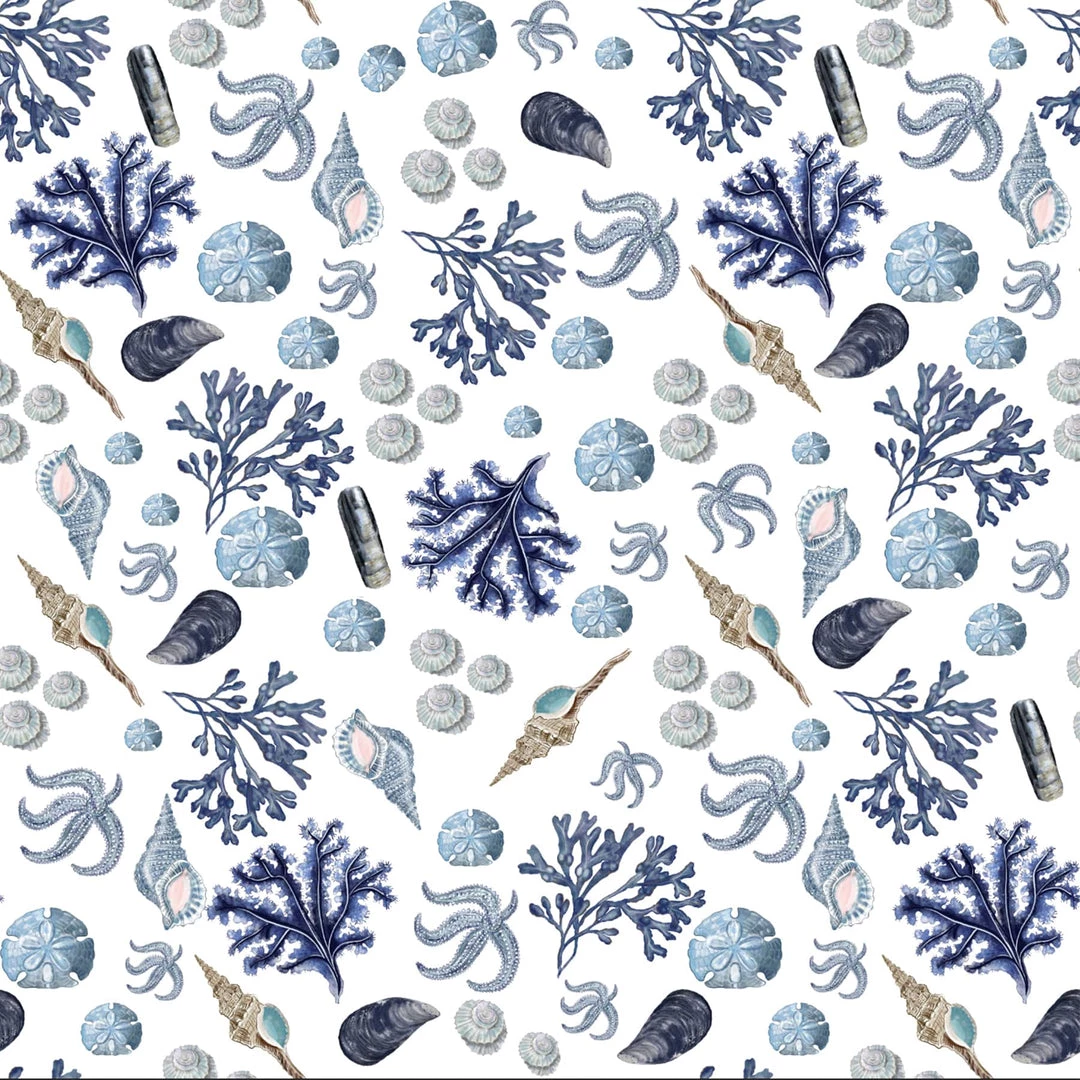 This beautiful design reminds us of Cornish summers. Inspired by the coast, this fabric makes it easy to create your own unique coastal style. Razor clams, mussel shells, winkles and a whelk shell sit against a beautiful fan of indigo seaweed. It has shades of blue, from deep washy indigos, silver greys, through to sky blues with a pop of soft pink.
