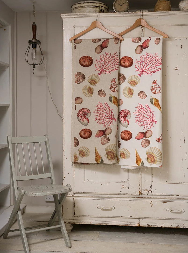 Our Shell Seeker design is simply gorgeous; instantly creating a calm and peaceful space. Inspired by some of our favourite shells such as the rare Nautilus shell, scallops and the ubiquitous whelk, this unique fabric brings a piece of the coast into your home.