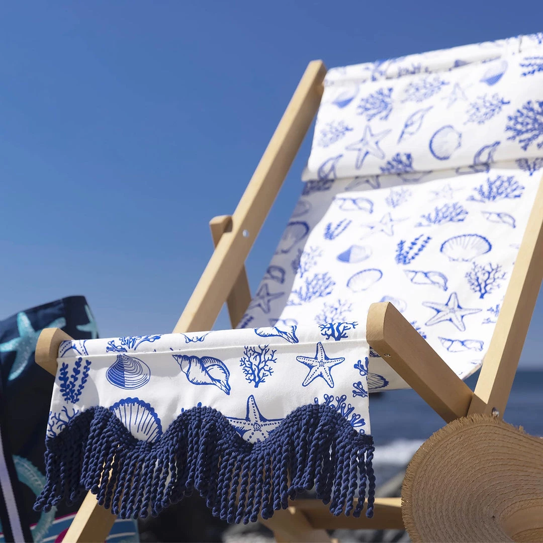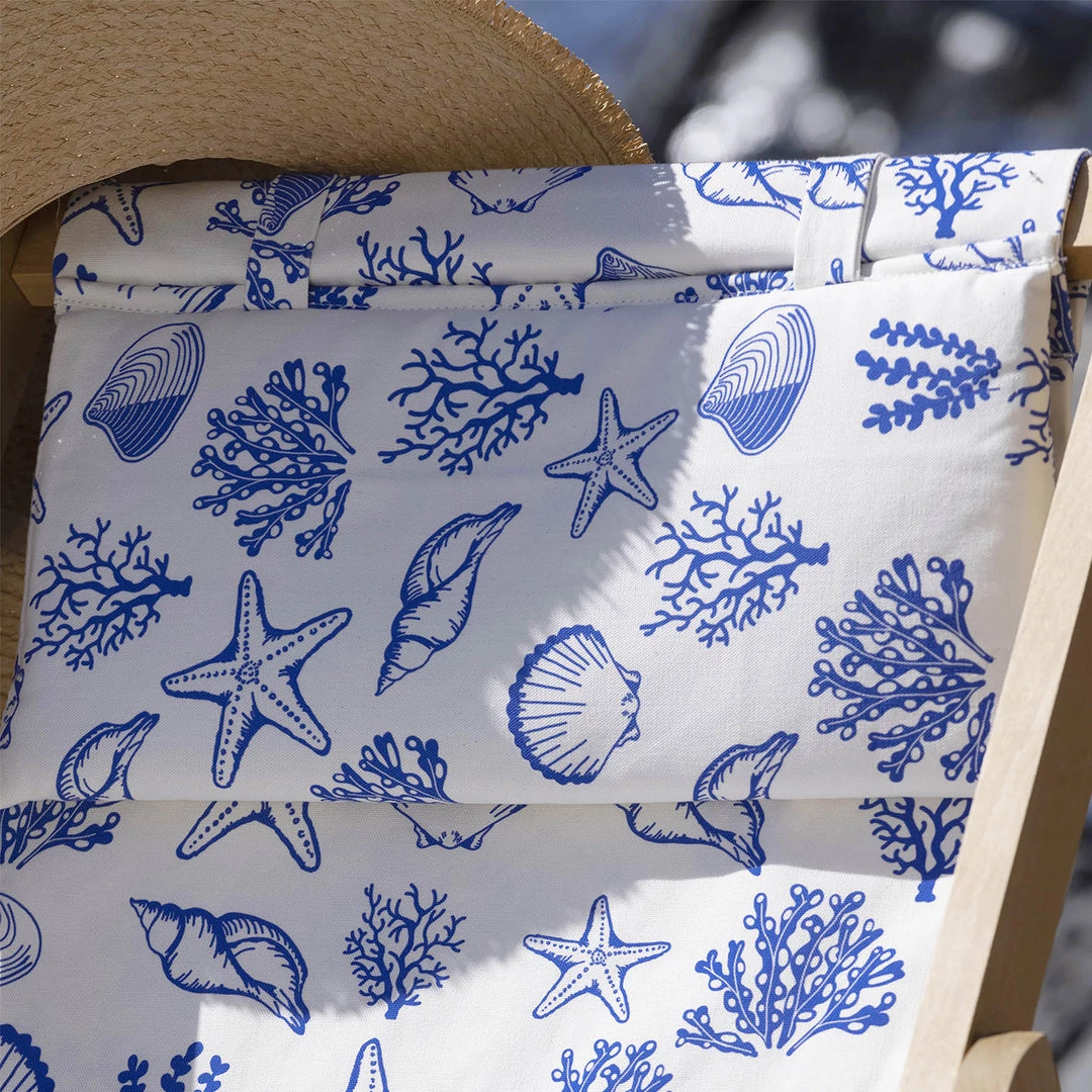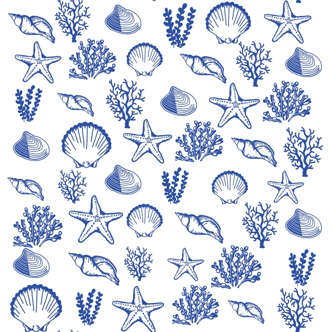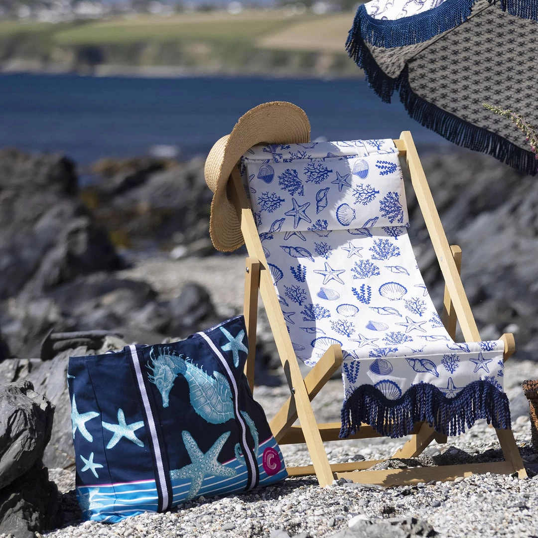 This beautiful fabric instantly takes you to happy memories of the coast. An array of stunning, cobalt blue shells, seaweed and starfish adorn an off white background to create this unique design.
