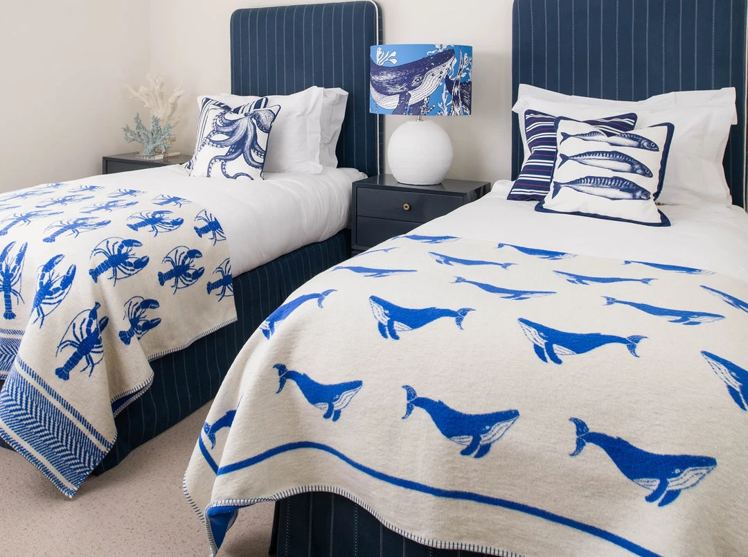 We’ve given this collection a twist by digitally printing it onto a matt velvet which gives it a really luxe look and even better, it has gorgeous stripe back with a flash of red which really gives you the coastal look.