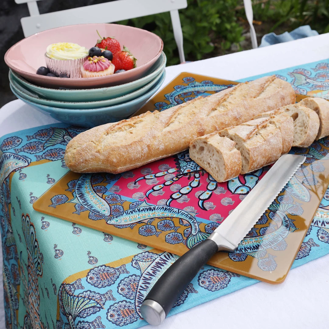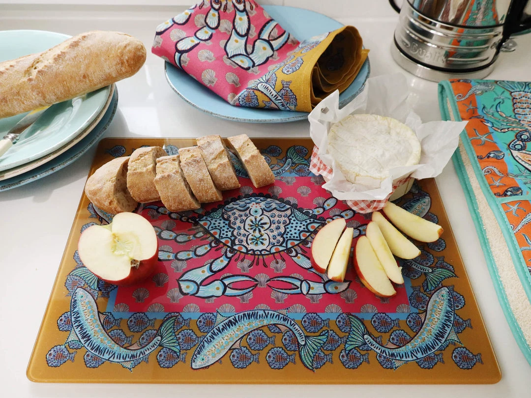 Made from toughened recycled glass, this beautiful, yet practical worktop saver protects your kitchen , and at the same time instantly adds those playful and bright summer feels to your kitchen space.