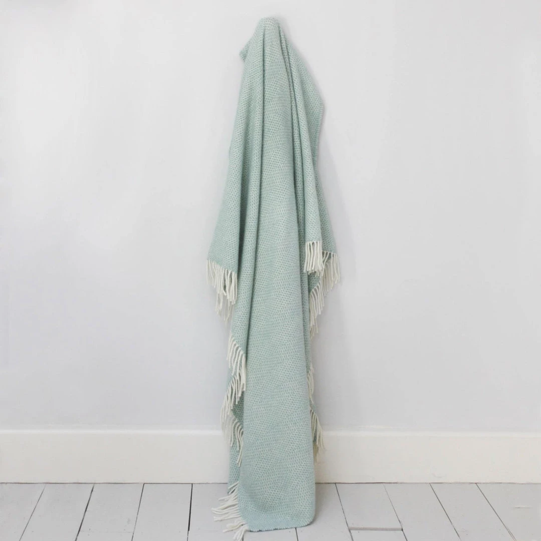 This beehive pure wool blanket in a gorgeous aqua, has a subtle contemporary pattern. It is lovely and thick but not too heavy, making it incredibly versatile and perfect for your bed or sofa. This is the cosy throw you’ll reach for when you want to snuggle up on cool nights.