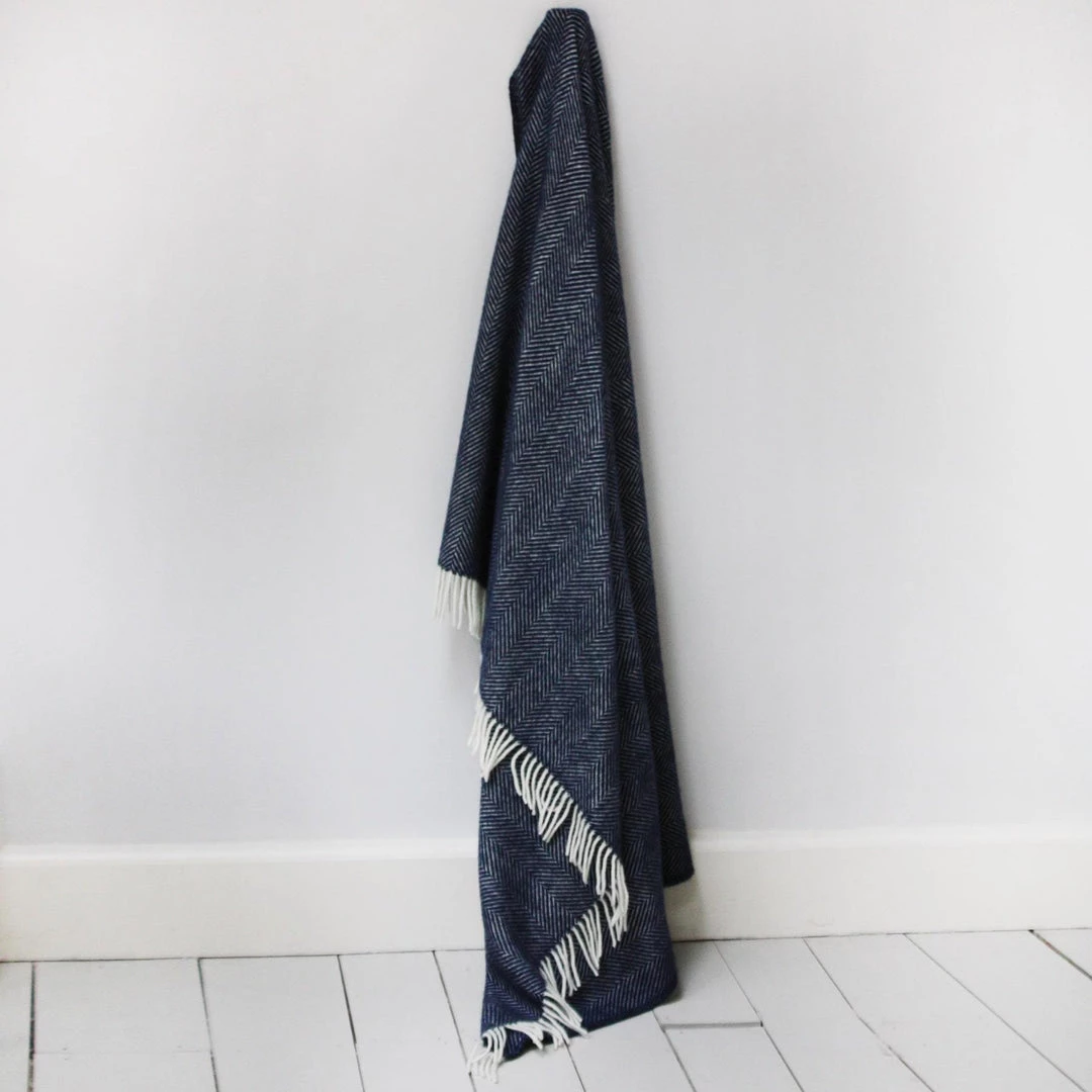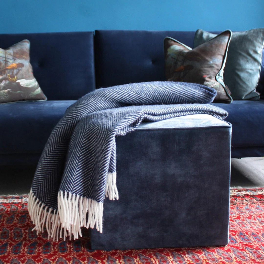 This classic pure wool blanket in navy blue has a truly sophisticated style. It is lovely and thick but not too heavy, making it incredibly versatile and perfect for your bed or sofa. This is the cosy throw you’ll reach for when you want to snuggle up on cool nights.